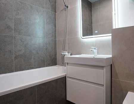 Невероятно уютная и стильная квартира в современном стиле. Встроенное трековое освещение, крупноформатный керамогранит, просторная душевая и многое другое.
