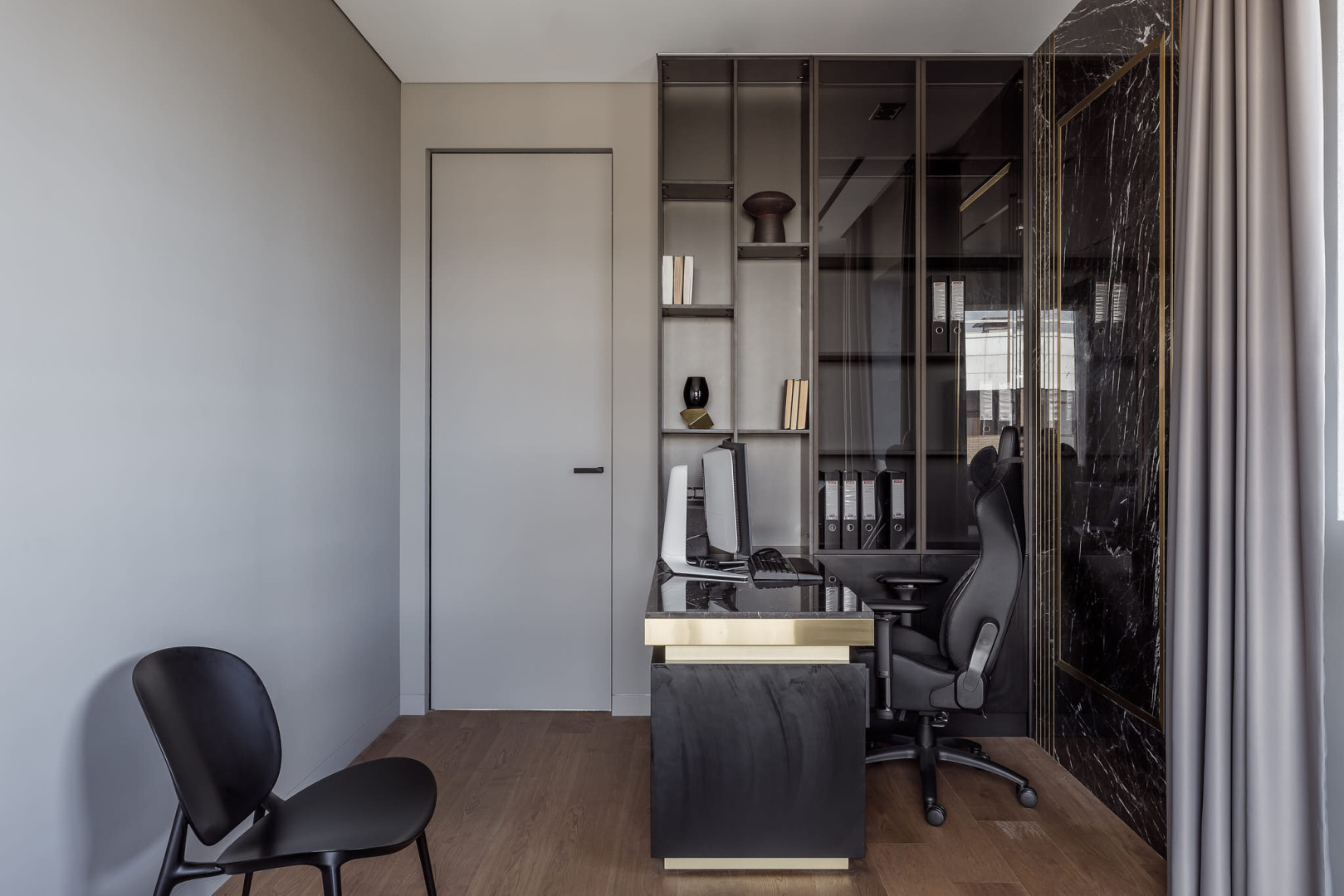 Современный, монохромный интерьер для ценителей минимализма.