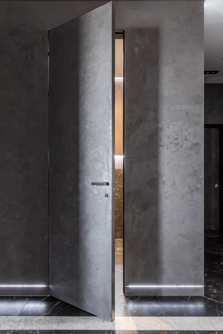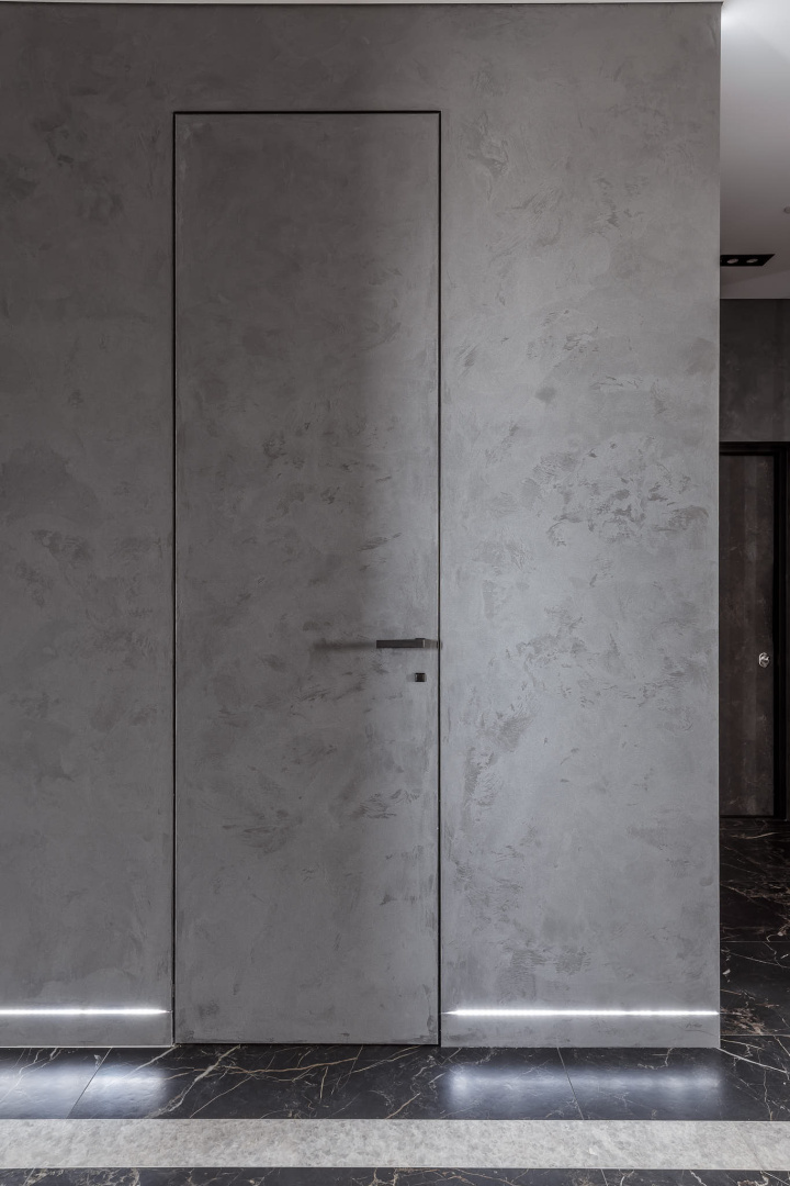 Скрытые двери, обилие белого цвета, трековый свет: проект в минимализме для ценителей современных интерьеров.