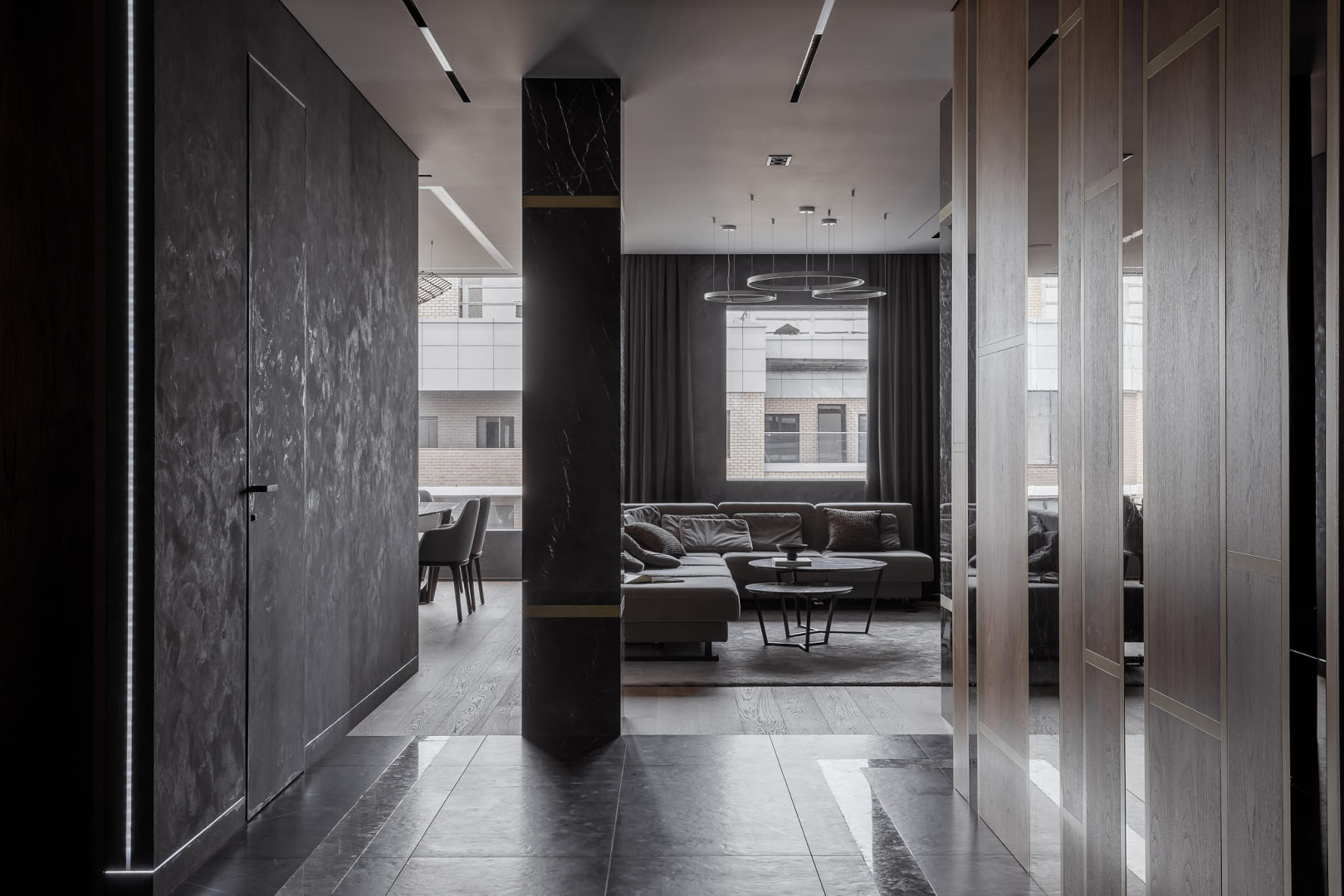 Квартира в современном стиле по нашему дизайн-проекту, основой которой стал черный цвет и все его оттенки.