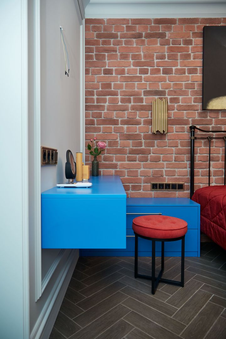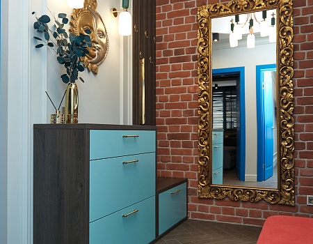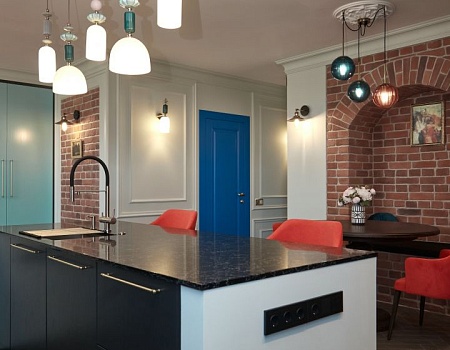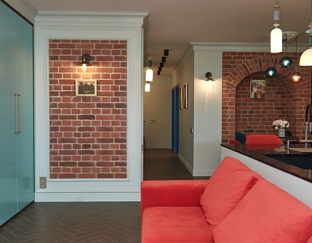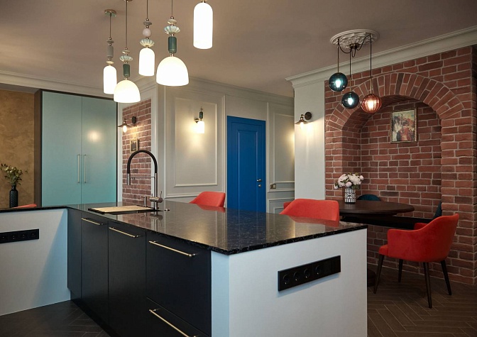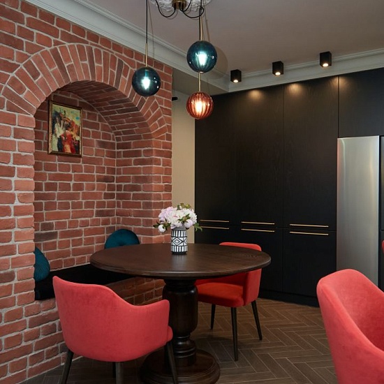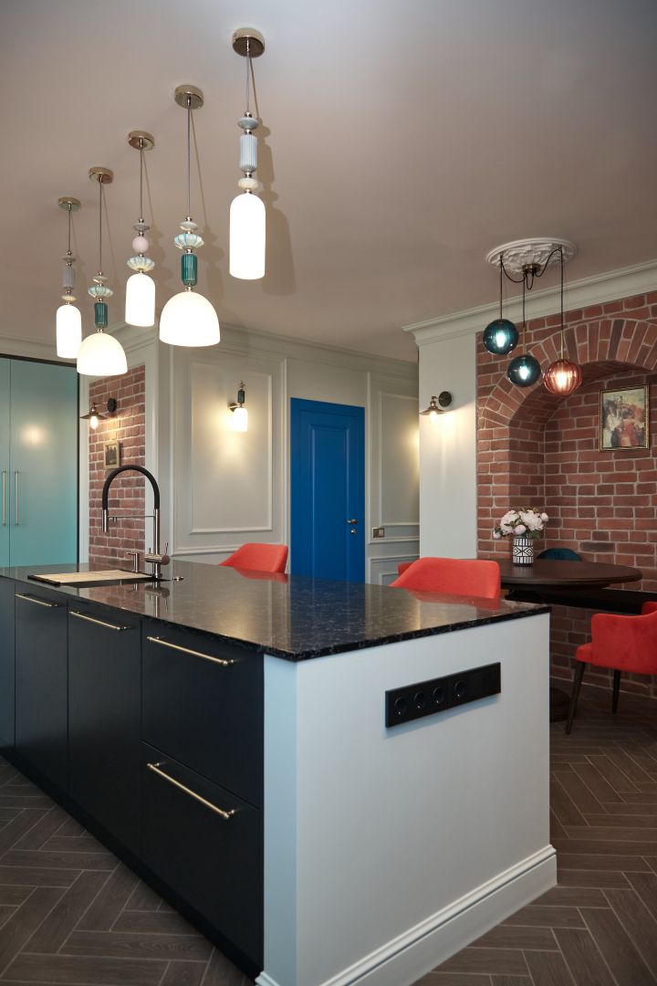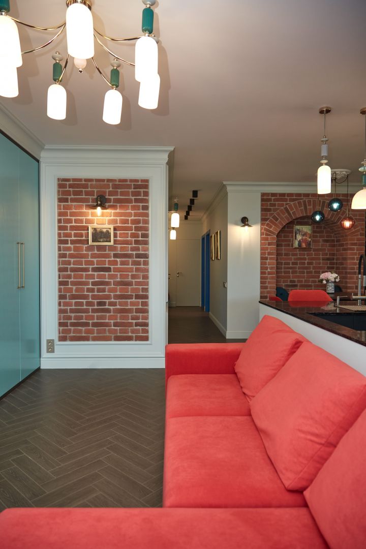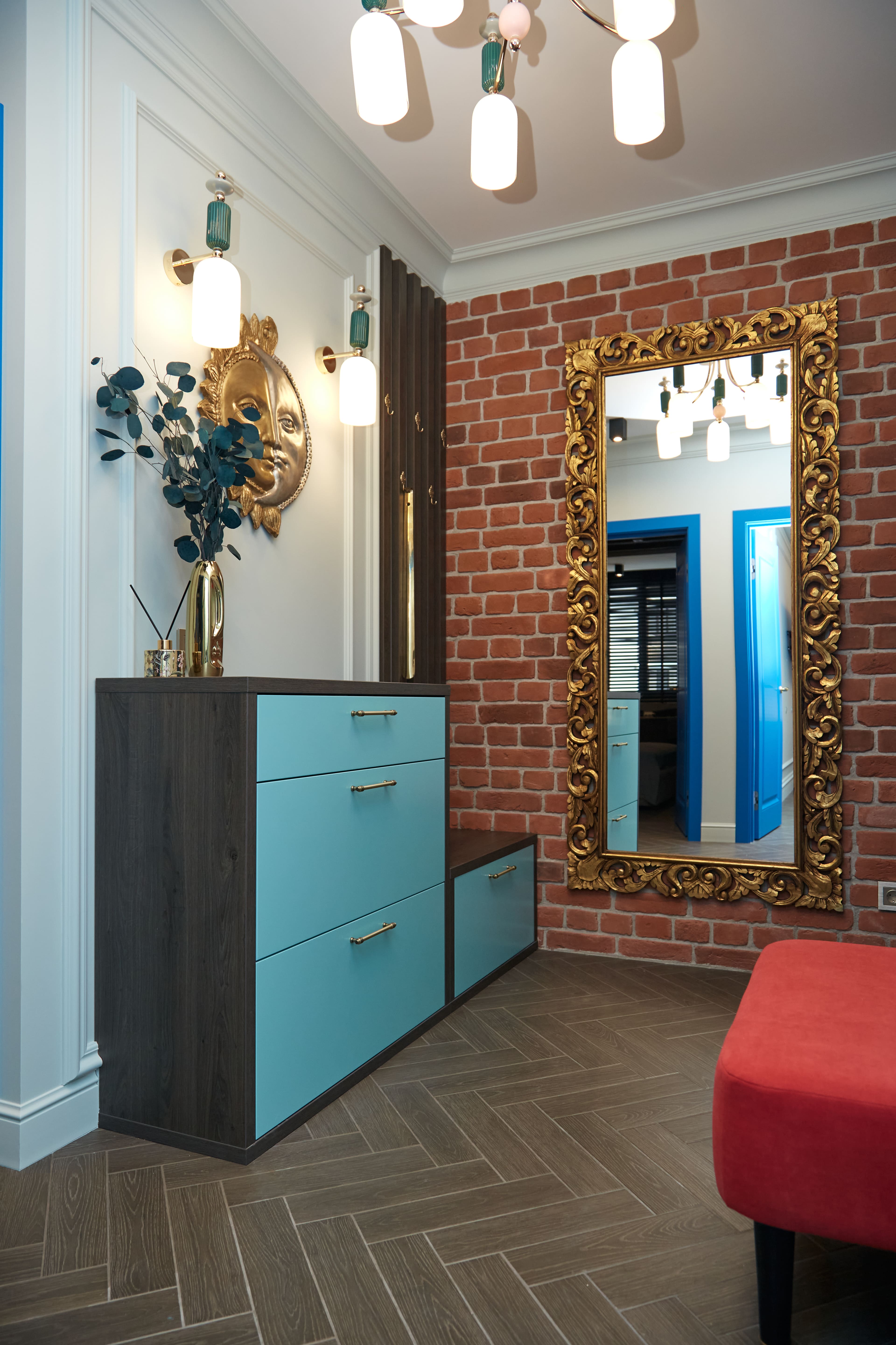 Цветной модернизм, золото и царский кирпич: необычный ремонт в стиле эклектика по нашему дизайн-проекту.