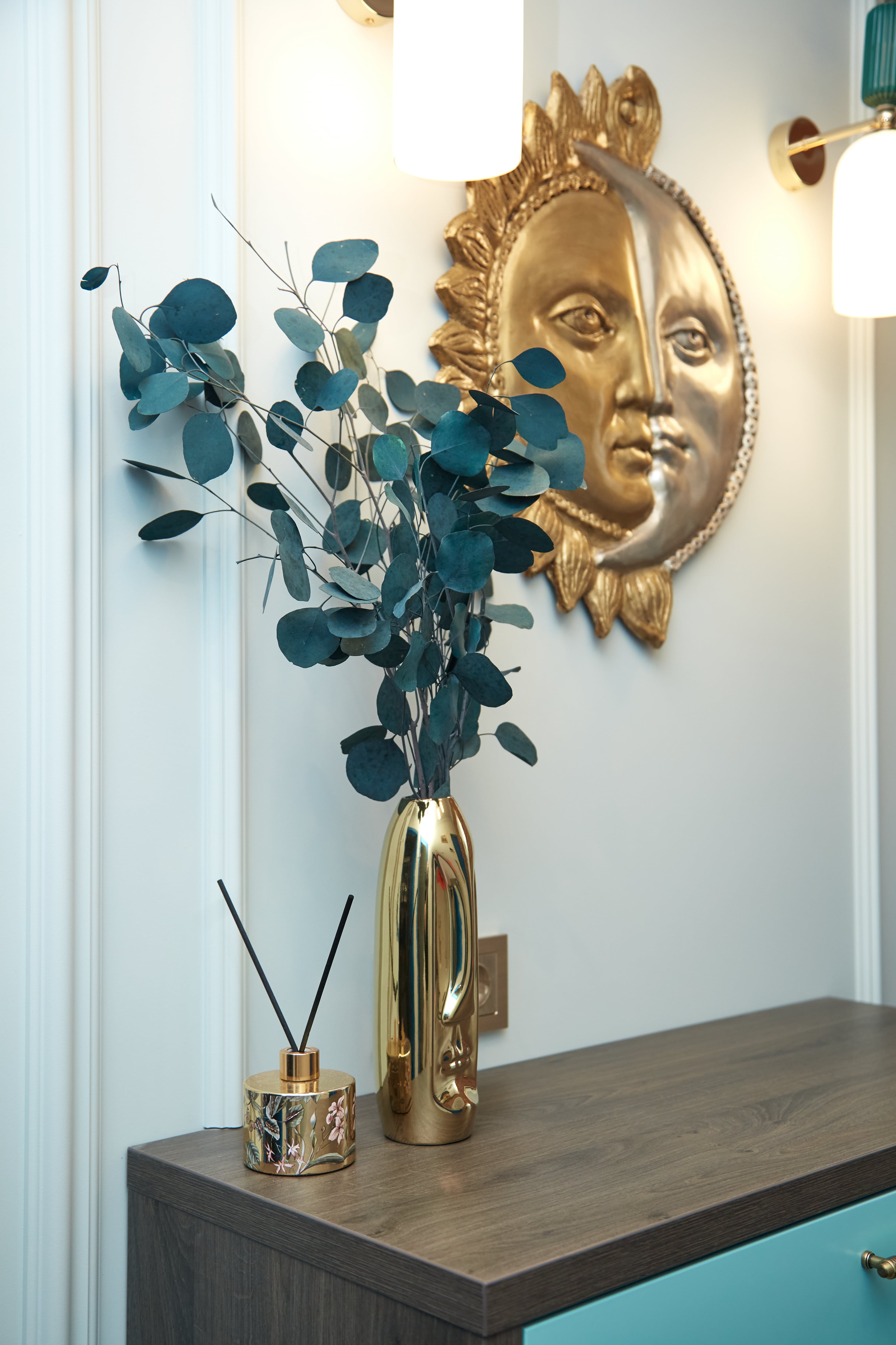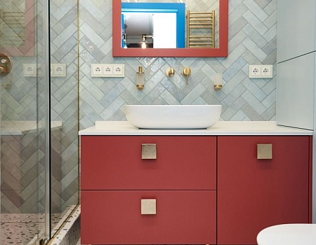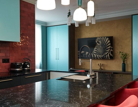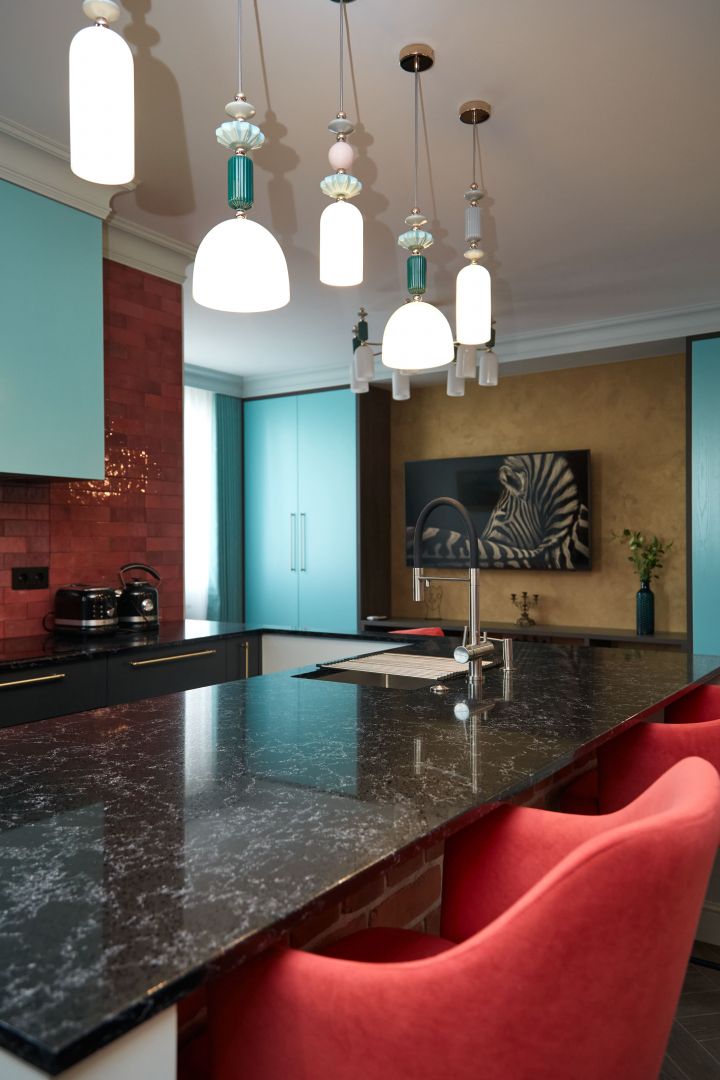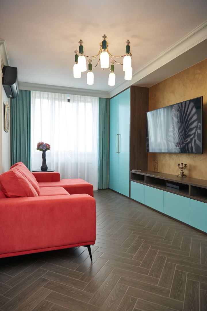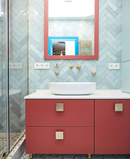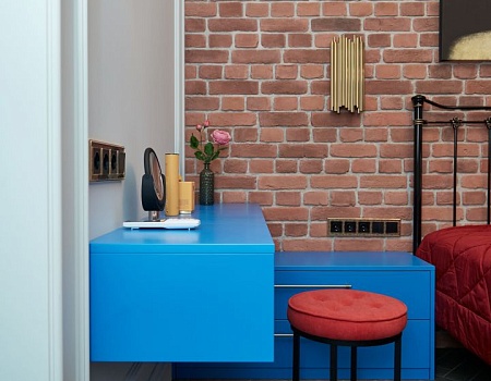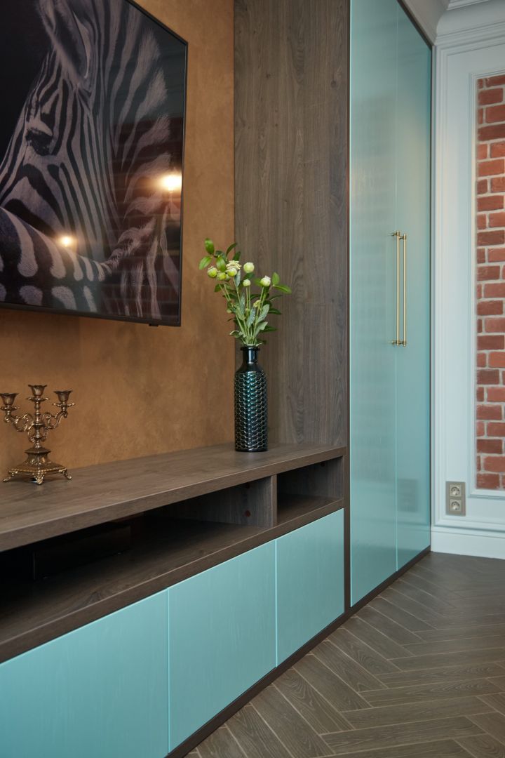 Цветной модернизм, золото и царский кирпич: необычный ремонт в стиле эклектика по нашему дизайн-проекту.