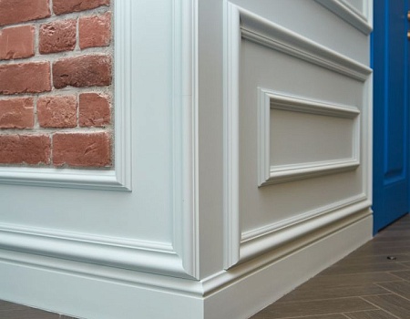 Роскошная квартира в стиле "неоклассика" для молодой девушки. Настенные молдинги, потолочные карнизы, стены под окраску и инженерная доска.