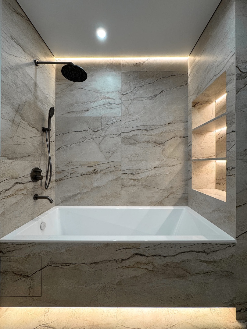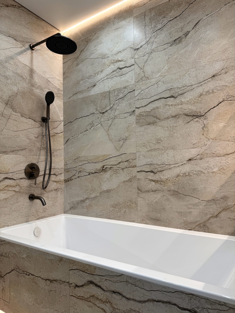 Невероятно уютная и стильная квартира в современном стиле. Встроенное трековое освещение, крупноформатный керамогранит, просторная душевая и многое другое.
