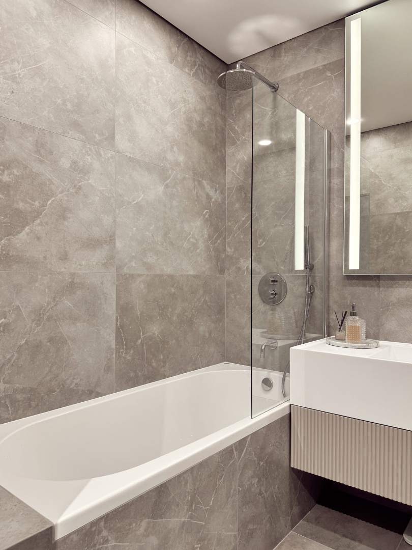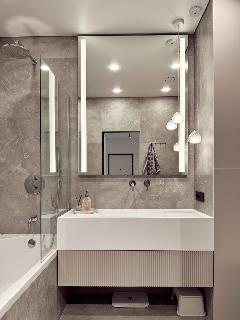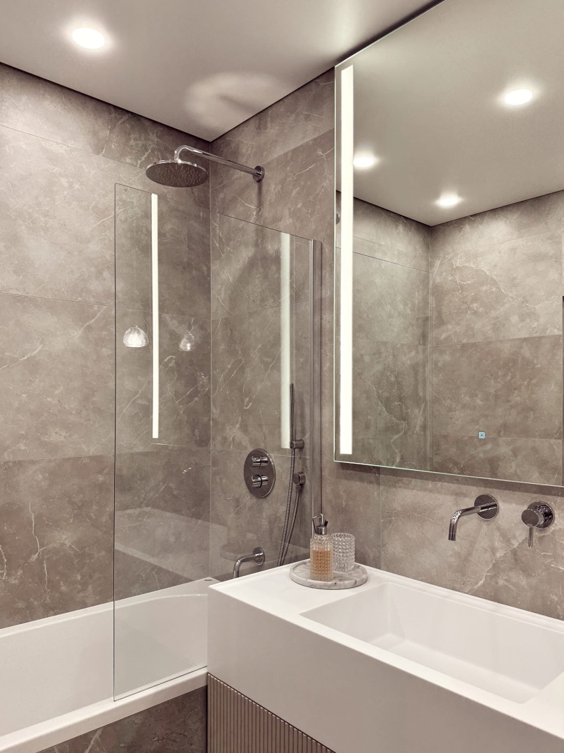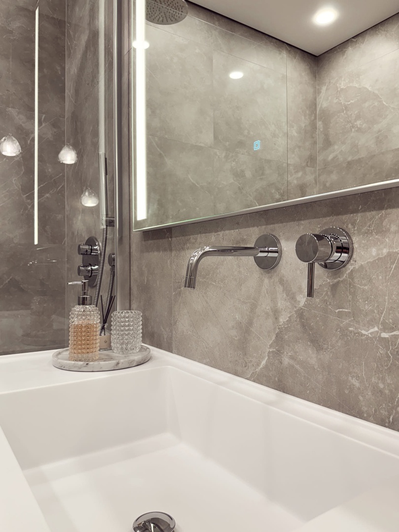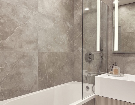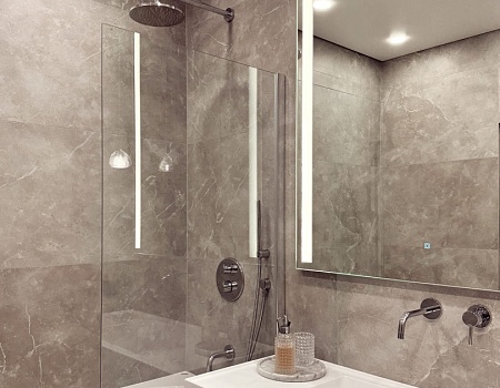 Невероятно уютная и стильная квартира в современном стиле. Встроенное трековое освещение, крупноформатный керамогранит, просторная душевая и многое другое.