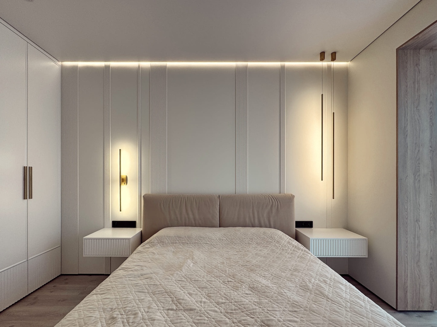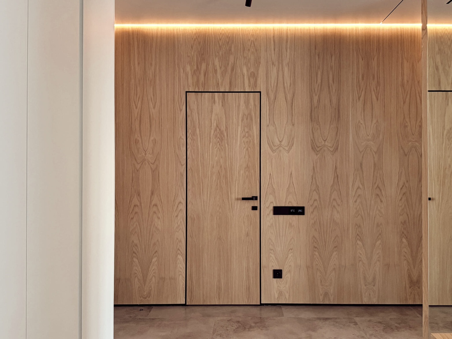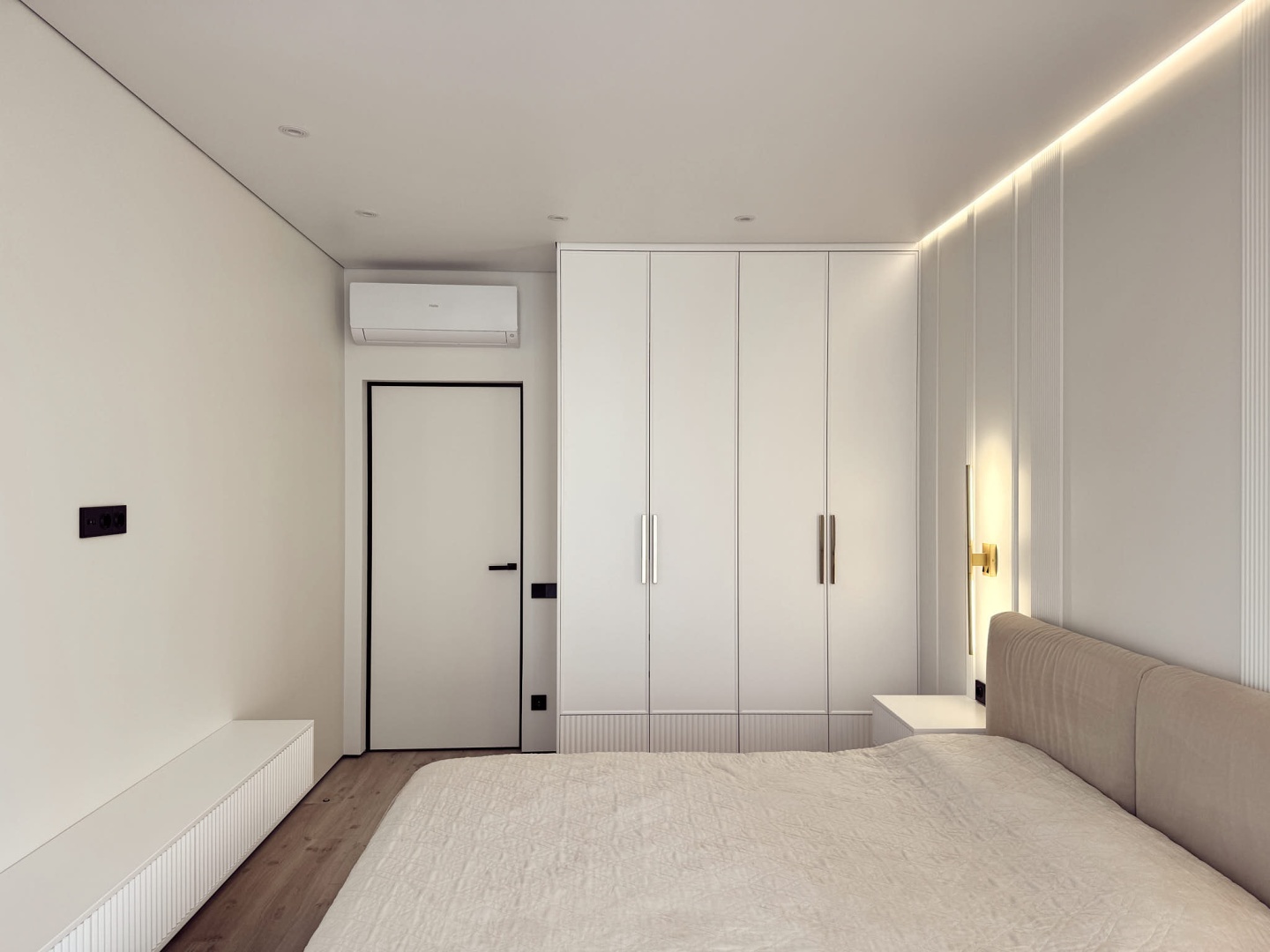 Скрытые двери, обилие белого цвета, трековый свет: проект в минимализме для ценителей современных интерьеров.