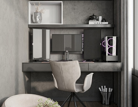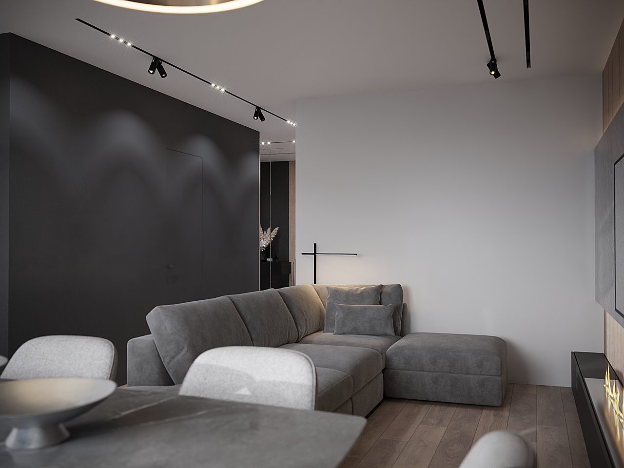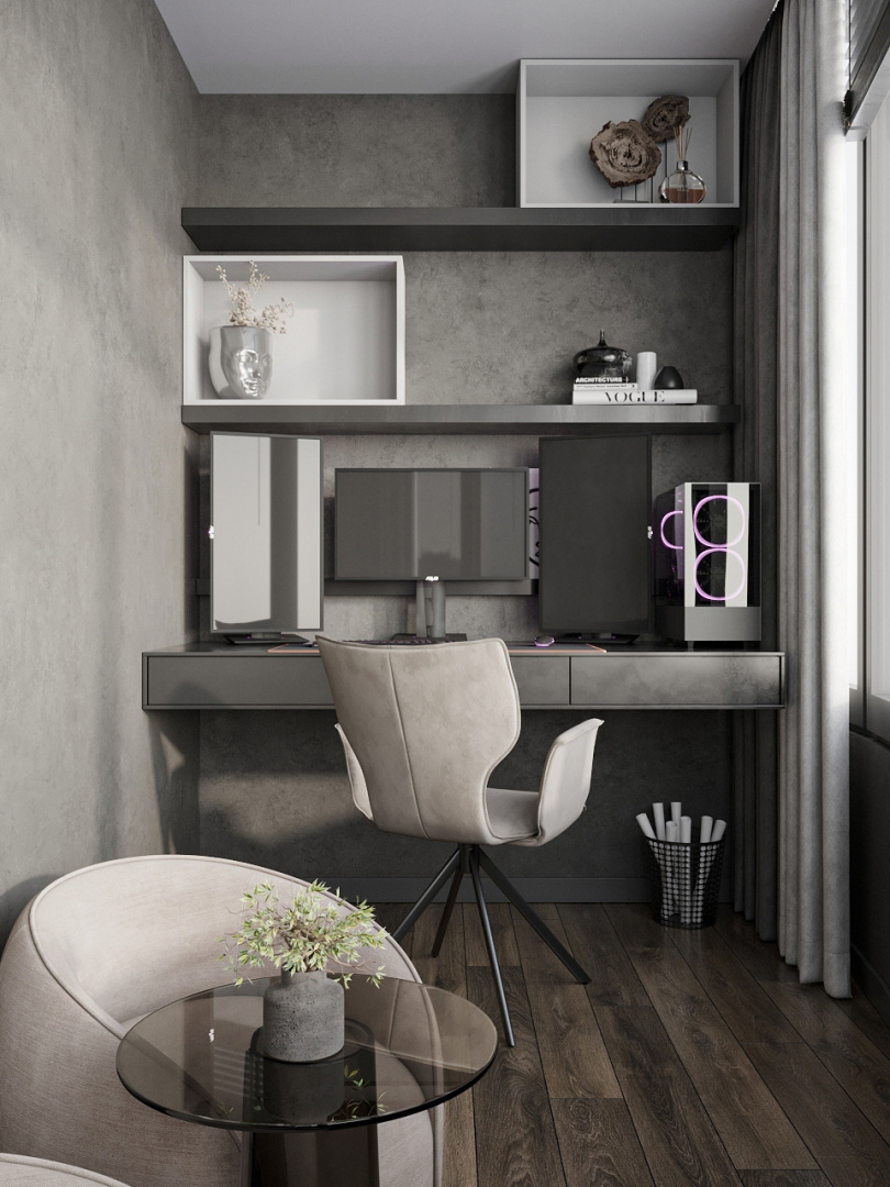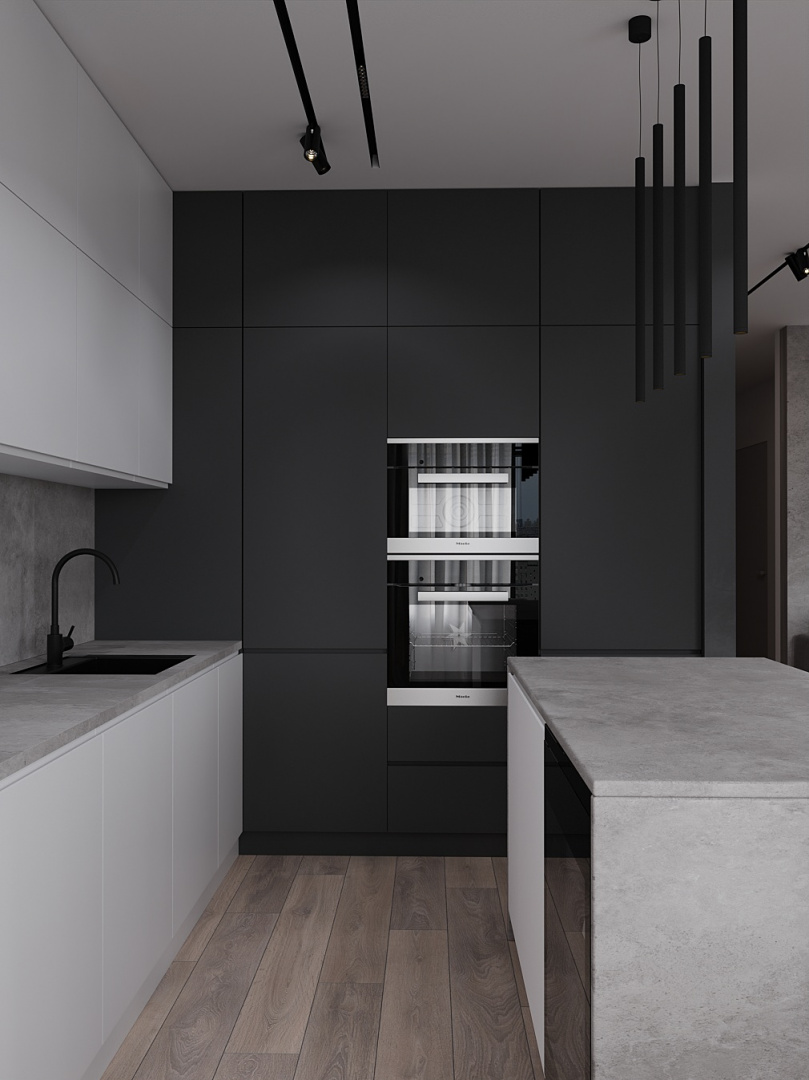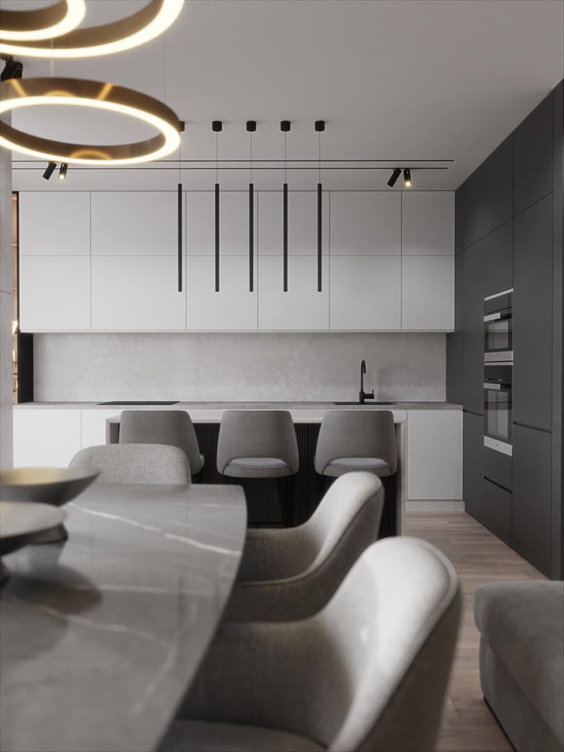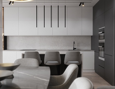 Современный, монохромный интерьер для ценителей минимализма.