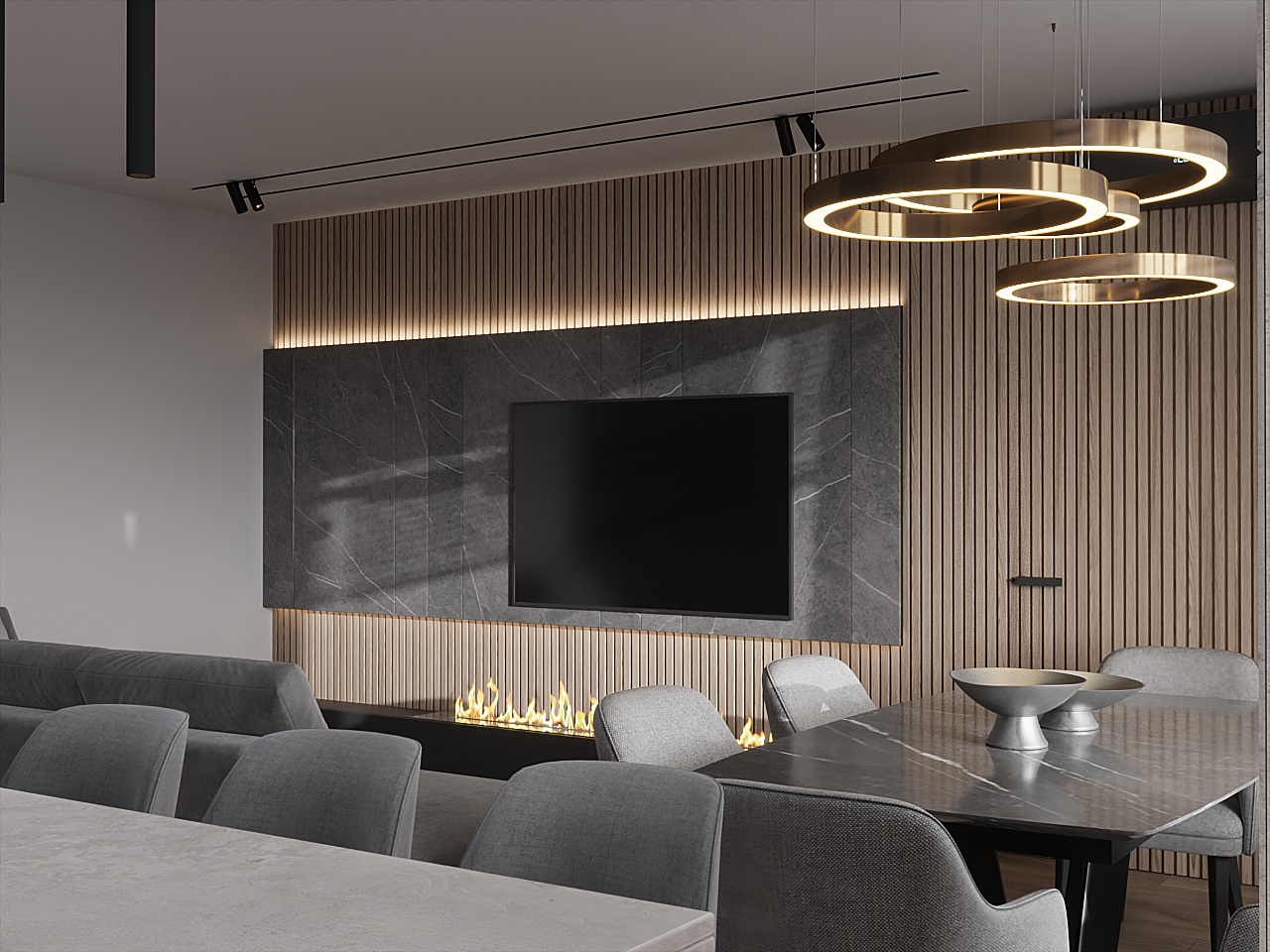 Мрамор, гипсовые панели, декоративная штукатурка: «нескучный» интерьер в современном стиле.