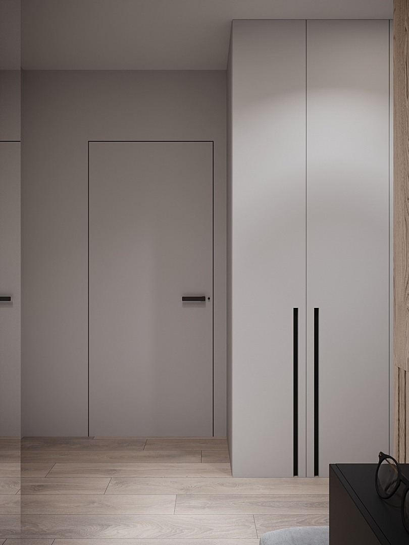Скрытые двери, обилие белого цвета, трековый свет: проект в минимализме для ценителей современных интерьеров.