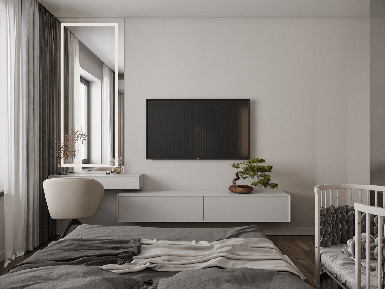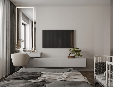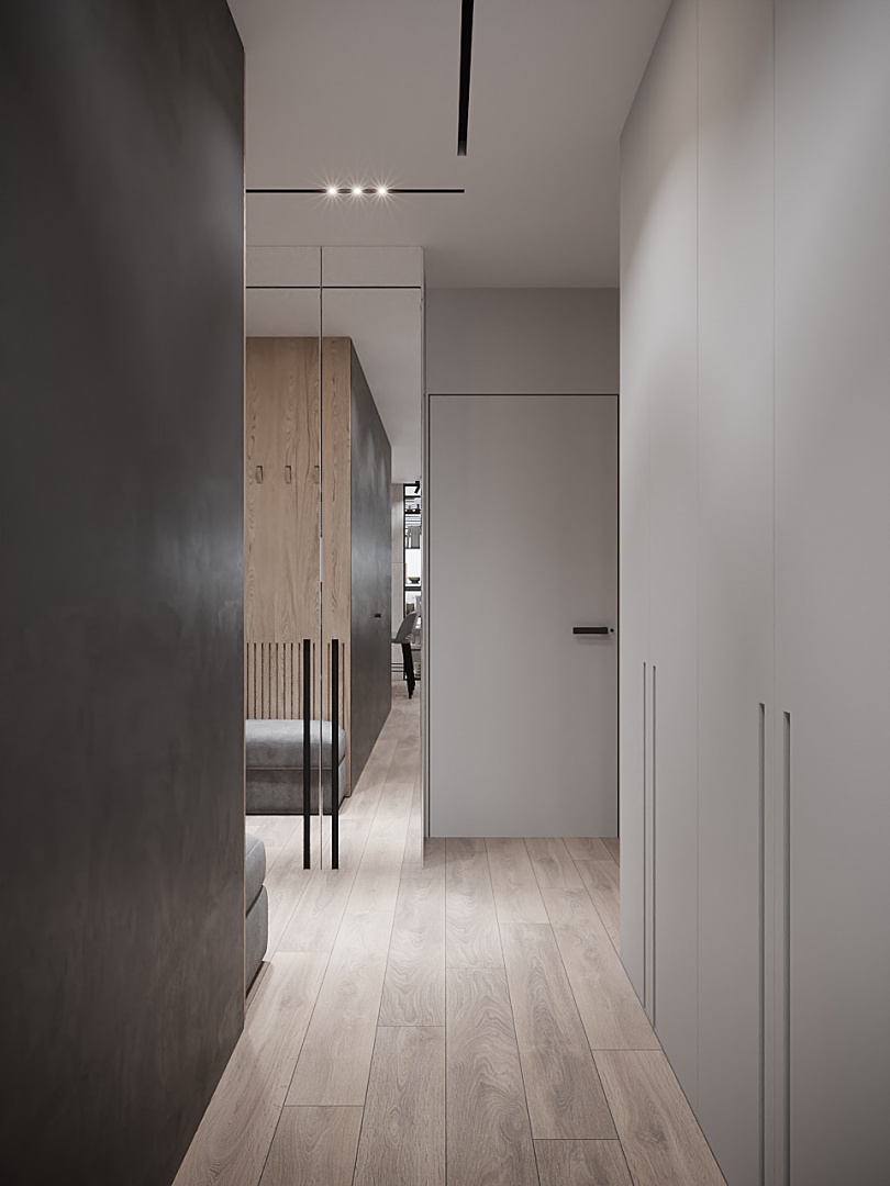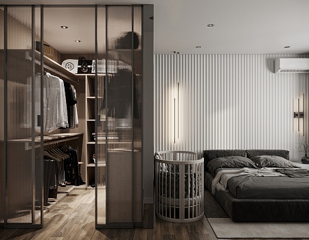 Современный и лаконичный дизайн-проект интерьера для молодой семьи.