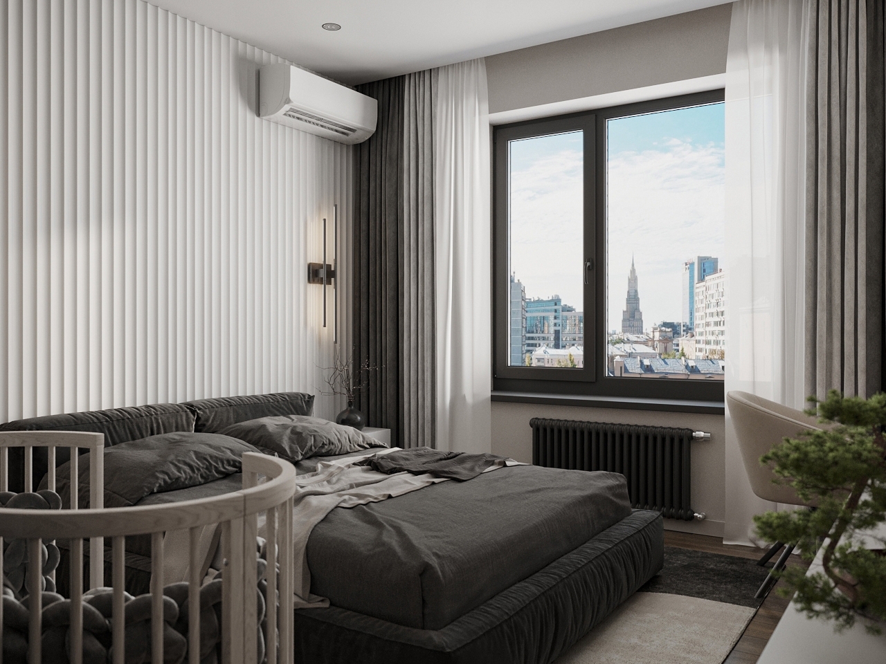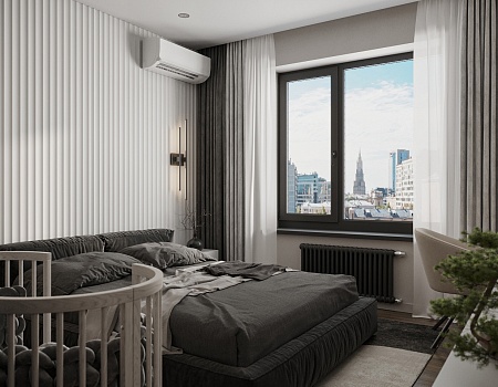 Трубчатые радиаторы, мастер-спальня, антивандальная краска: современная квартира по готовому дизайн-проекту.