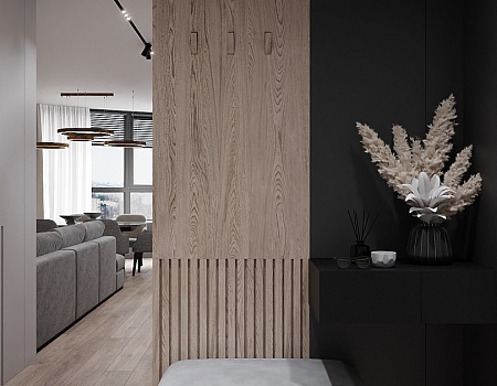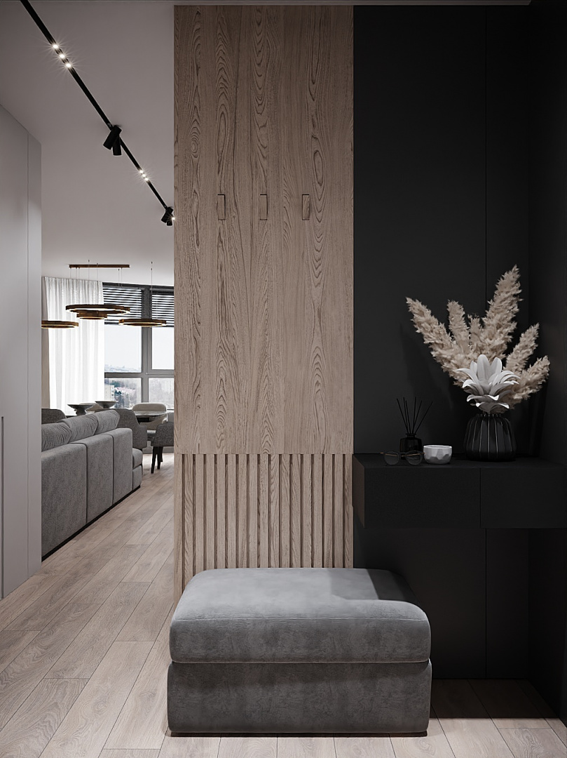 Квартира в современном стиле по нашему дизайн-проекту, основой которой стал черный цвет и все его оттенки.