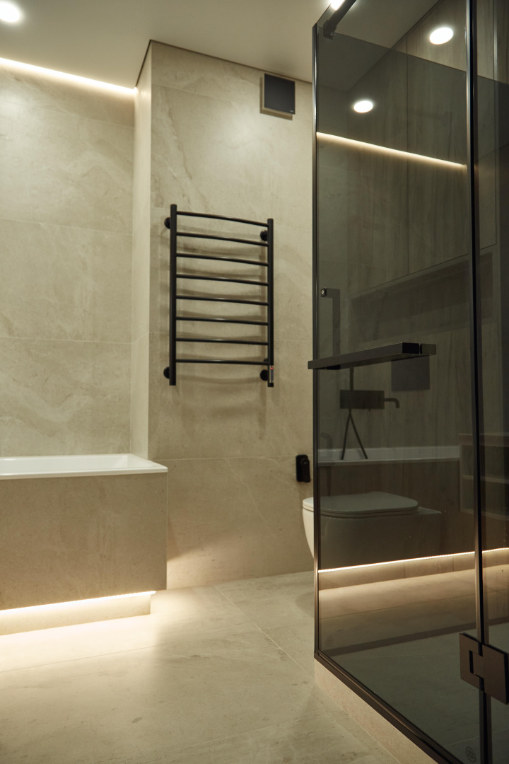Невероятно уютная и стильная квартира в современном стиле. Встроенное трековое освещение, крупноформатный керамогранит, просторная душевая и многое другое.