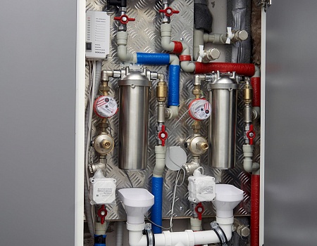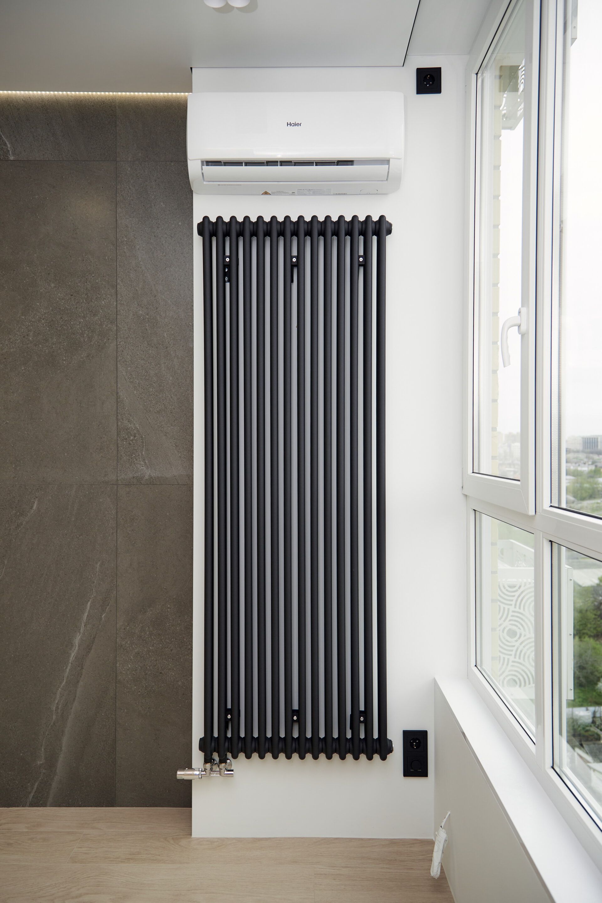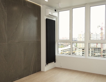 В зоне столовой и жилых комнатах оставили радиаторы от застройщика, изменив расположение вводных кранов.