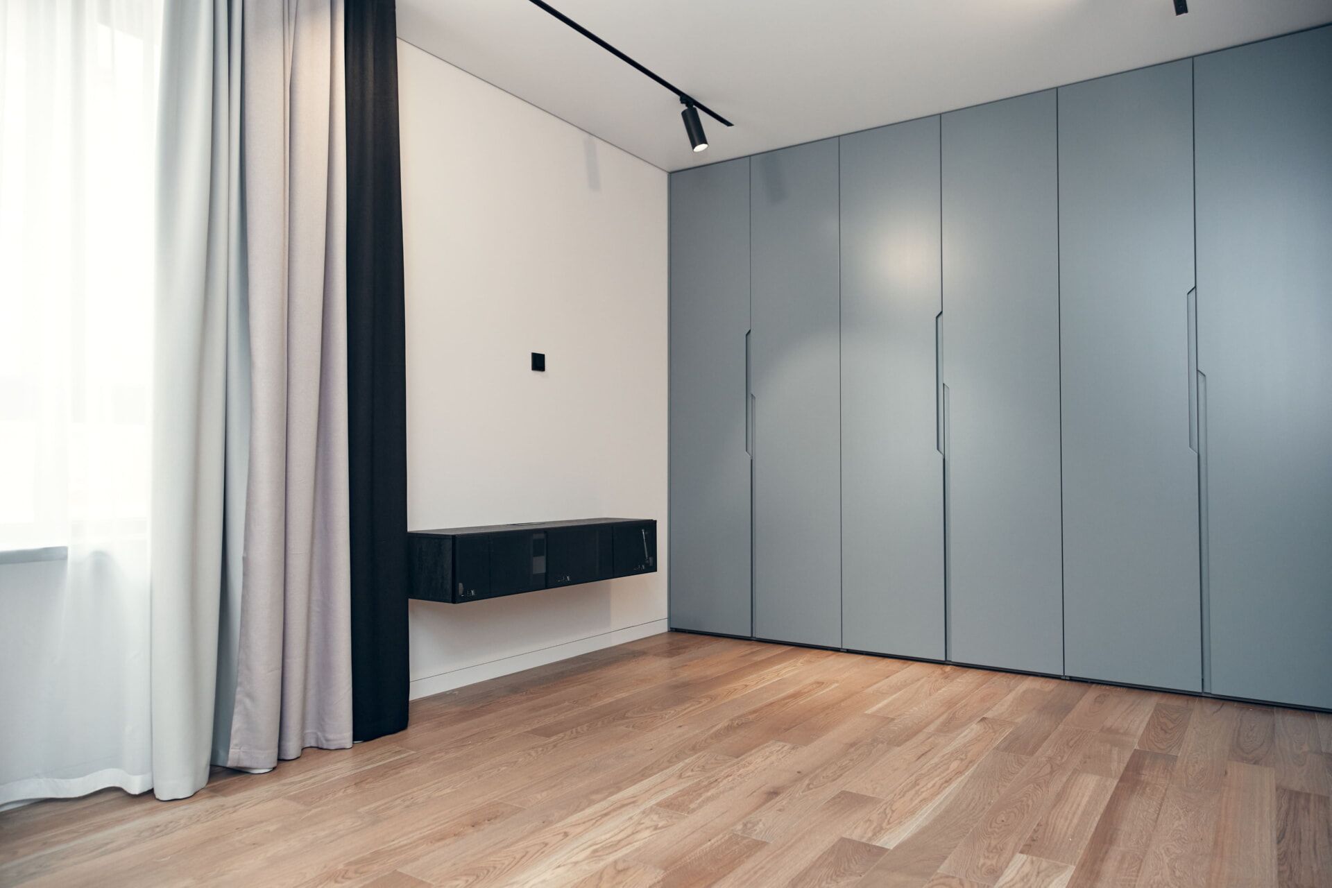 Скрытые двери, обилие белого цвета, трековый свет: проект в минимализме для ценителей современных интерьеров.